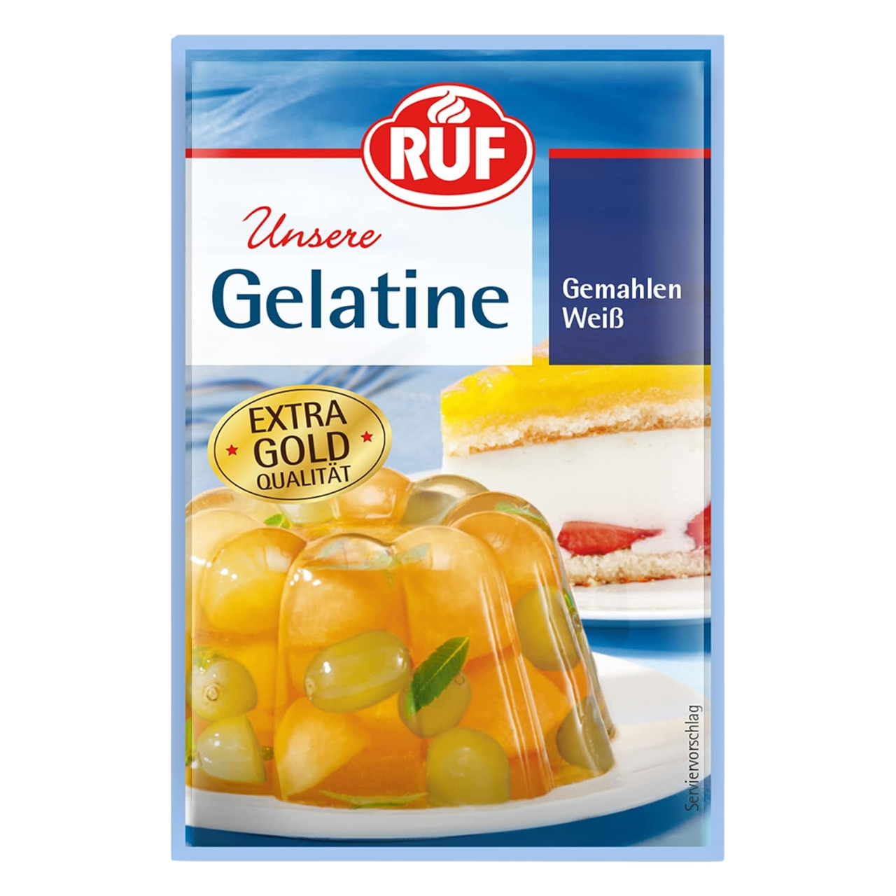Gelatin Ruf hoàn toàn không có vị và có thể được sử dụng cho cả món ngọt và món mặn. Khối gelatin trong suốt tan mà không để lại cặn và không làm đổi màu chất lỏng và kem.