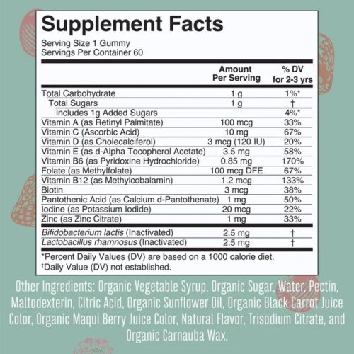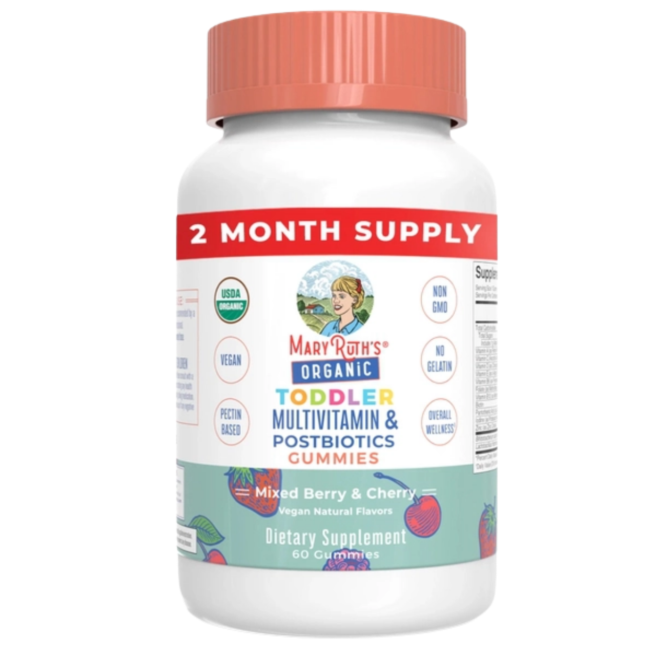 Chỉ với 1v mỗi ngày, Kẹo MultiVitamin + Postbiotics Hữu Cơ MaryRuth’s cung cấp cho trẻ đến 10 loại vitamin và khoáng chất thiết yếu cùng với probiotics để hỗ trợ sức khỏe tổng thể.