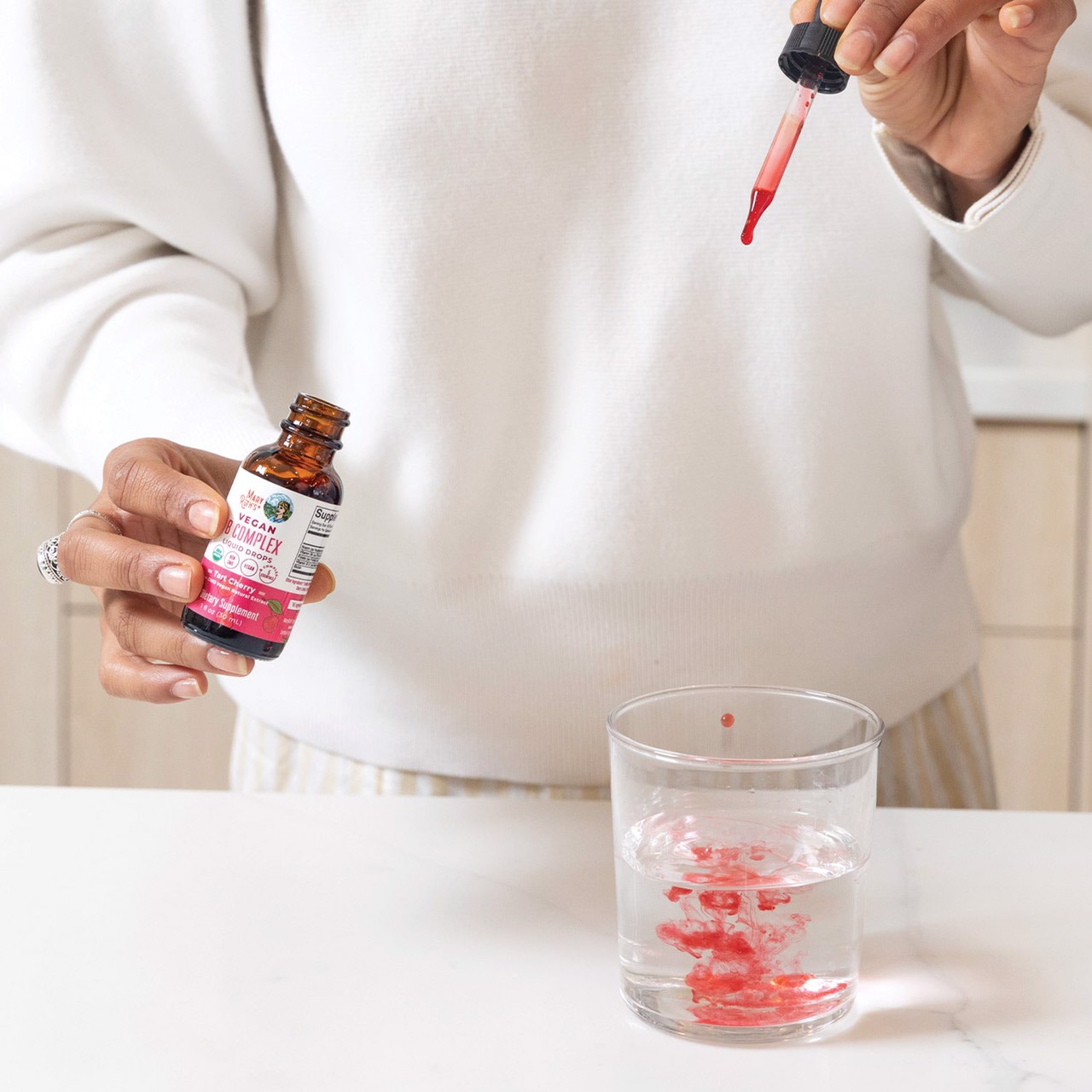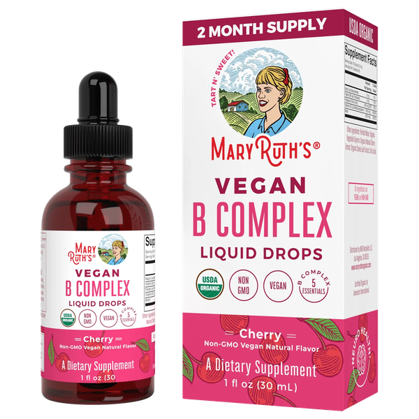 Vì vitamin B tan trong nước nên cơ thể bạn không lưu trữ chúng và chúng phải được cung cấp cho cơ thể bạn hàng ngày. MaryRuth’s B-Complex Drops có hương vị anh đào chua chua, thơm ngon đáp ứng nhu cầu vitamin B của cơ thể bạn – B3 (Niacinamide), B6 (Pyridoxine), B7 (Biotin), B9 (Folate) và B12 (Methylcobalamin)